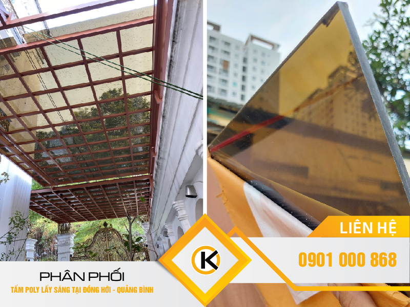 Mẫu tấm poly lấy sáng đặc ruột màu trà.